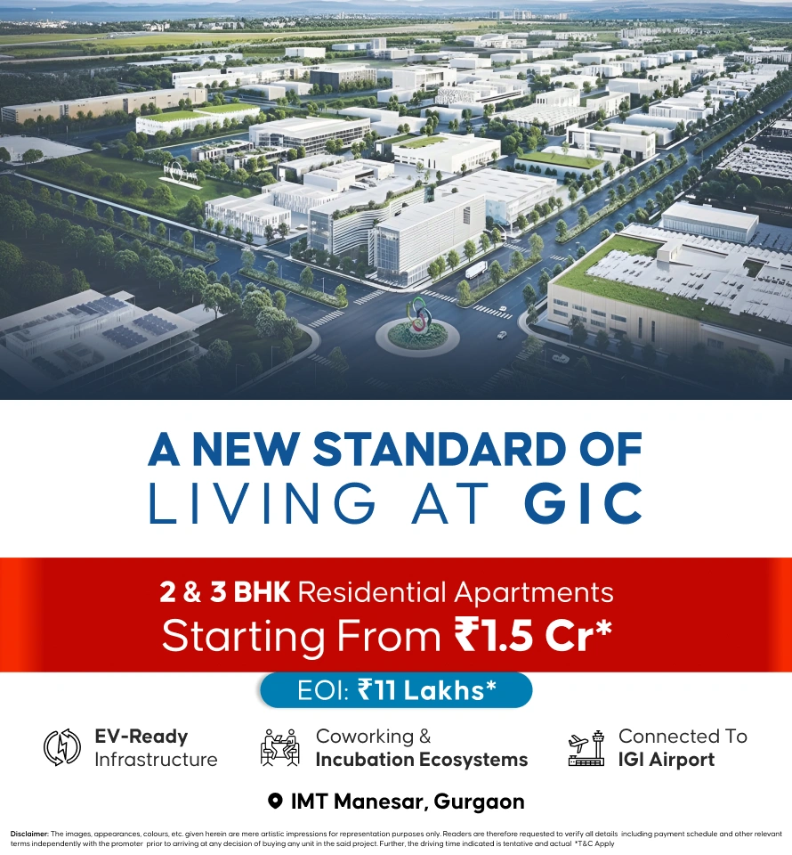 Spread across a prime location in Manesar, Gurgaon, GIC offers thoughtfully designed 2 & 3 BHK residential apartments that redefine modern living with contemporary architecture, smart layouts, green surroundings, and lifestyle-enhancing amenities.